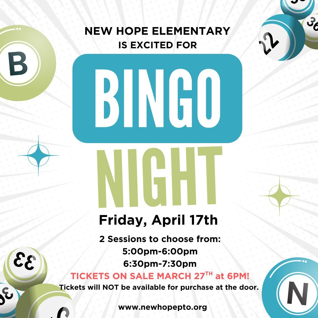Purchase your entry tickets here, additional booklets, daubers, and concessions at the New Hope PTO Store: newhopepto.org/store